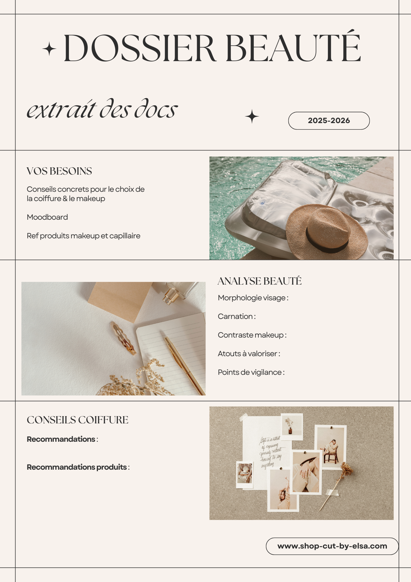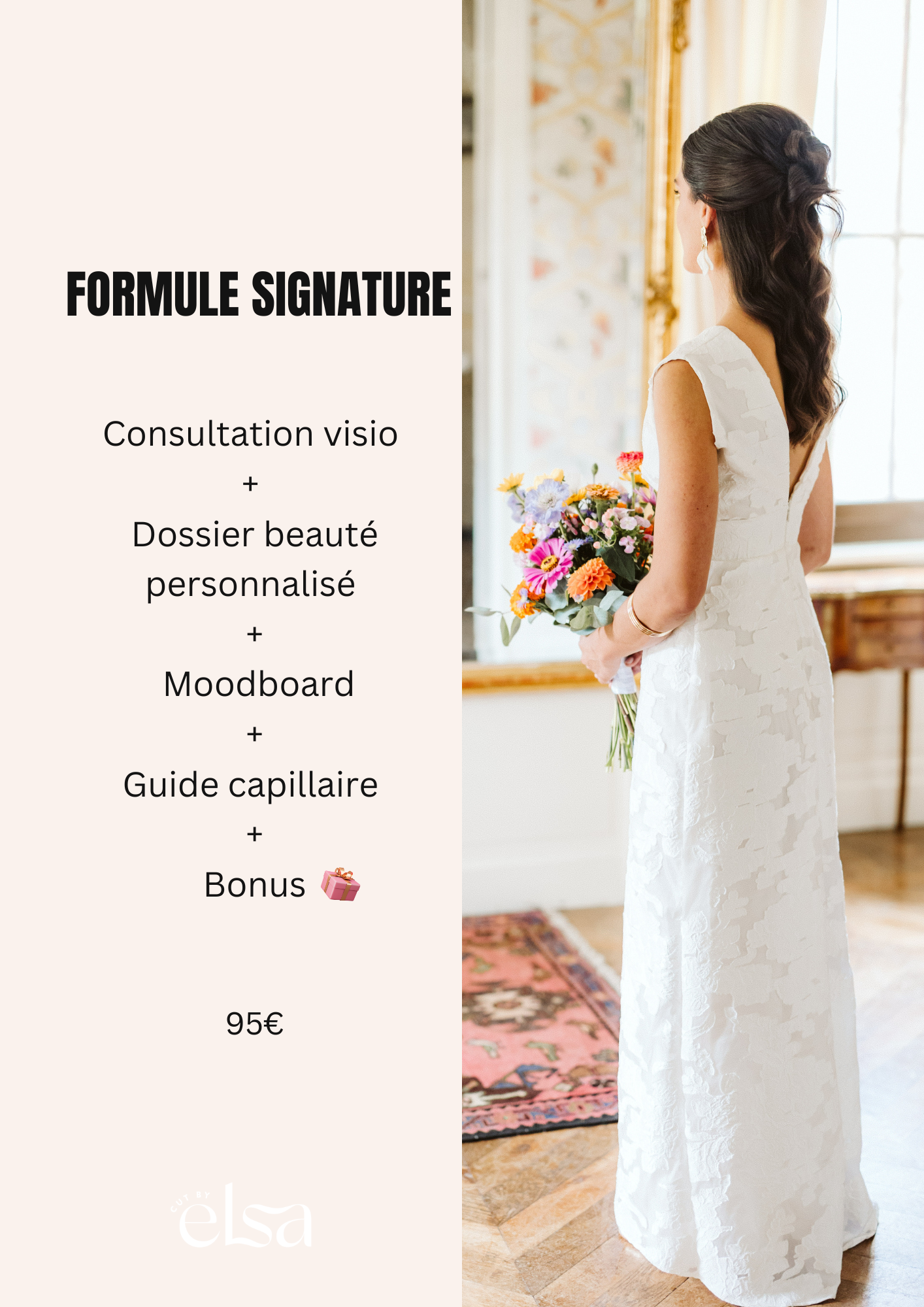 | Ce que contient la formule | • Consultation en visio 30min + Dossier personnalisé + Moodboard + Guide capillaire + BONUS |